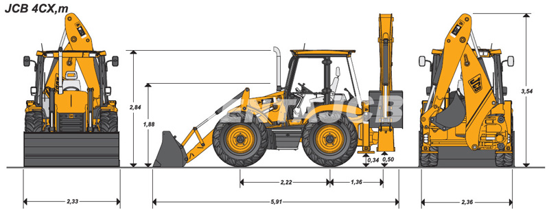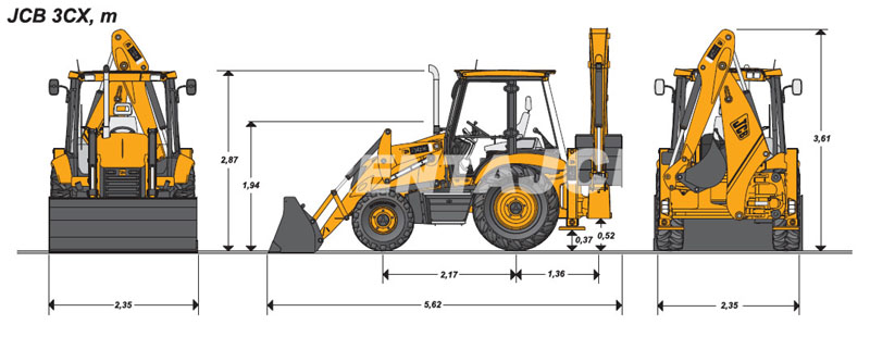 Габаритные характеристики экскаватора-погрузчика JCB 3cx и JCB 4cx