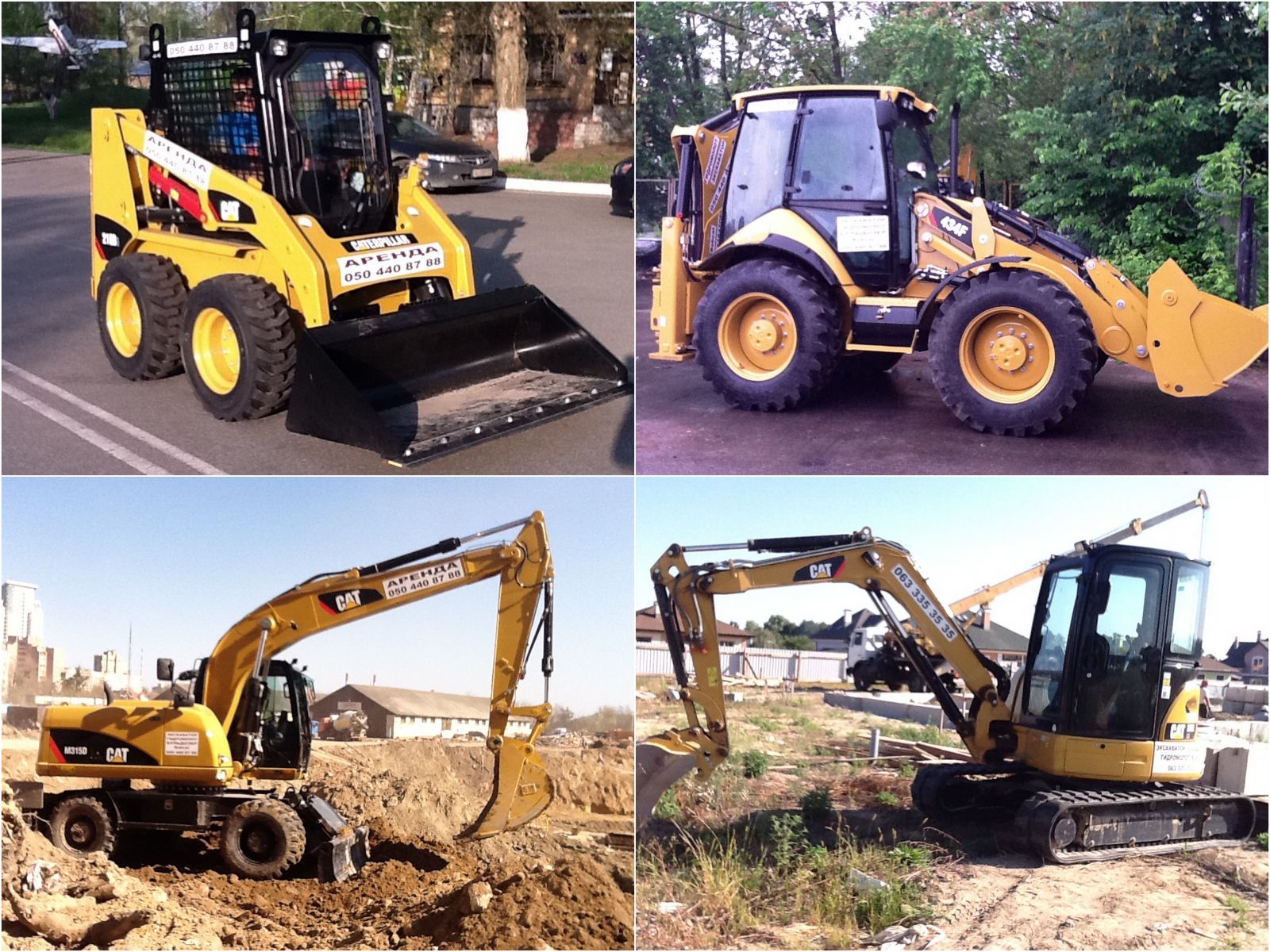 Экскаватор погрузчик, Колёсный экскаватор, Мини погрузчик, Мини экскаватор, Гусеничный погрузчик, Траншеекопатель, Фреза, Щётка, Вилы, Ямобур, Гибромолот, Культиватор, Бульдозер
